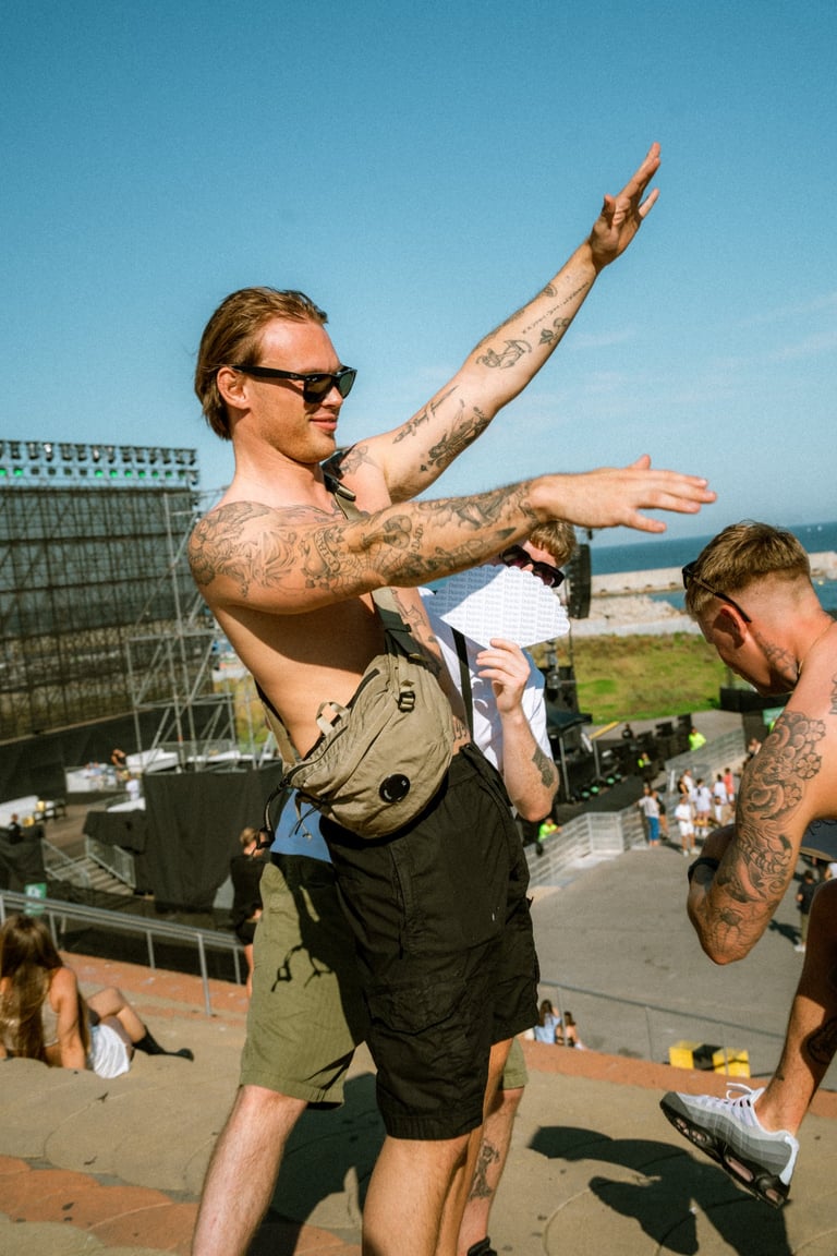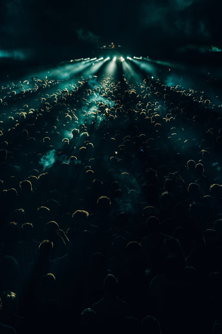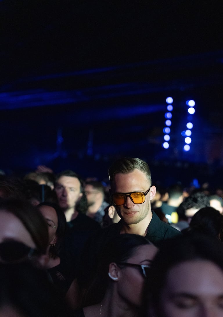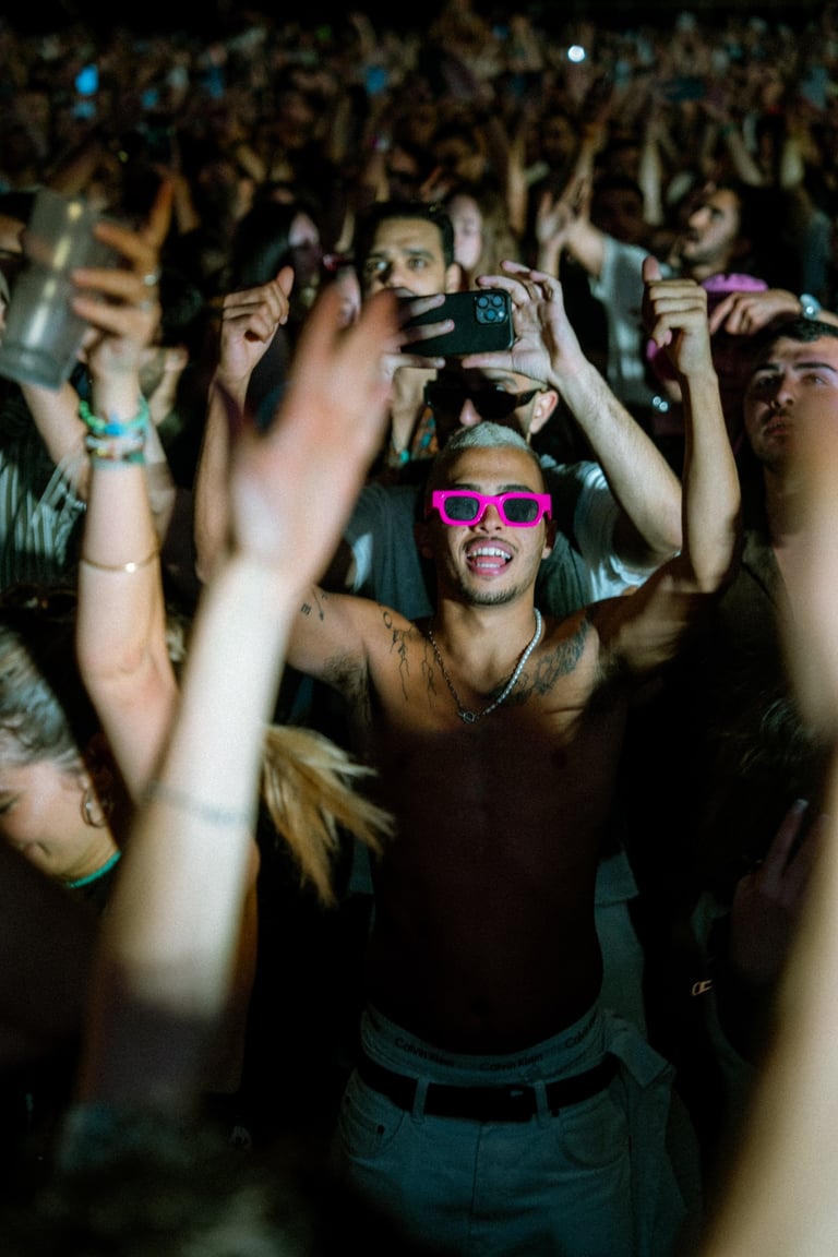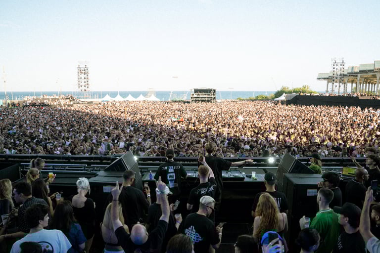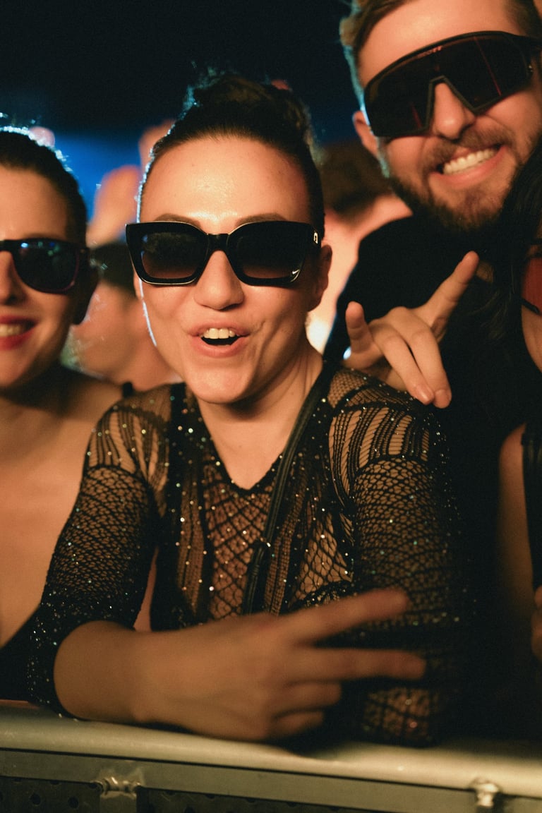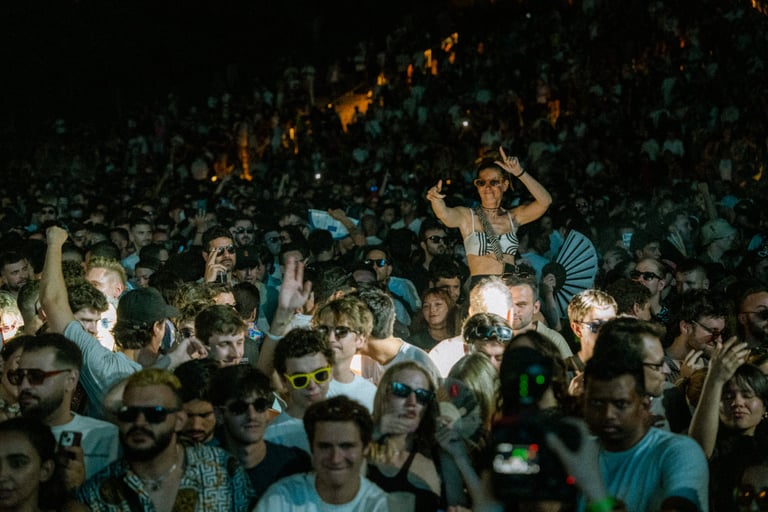 Two DJs performing at Afterlife, Anyma, Tale of Us. Stage lit with visual effects. Concert atmosphere